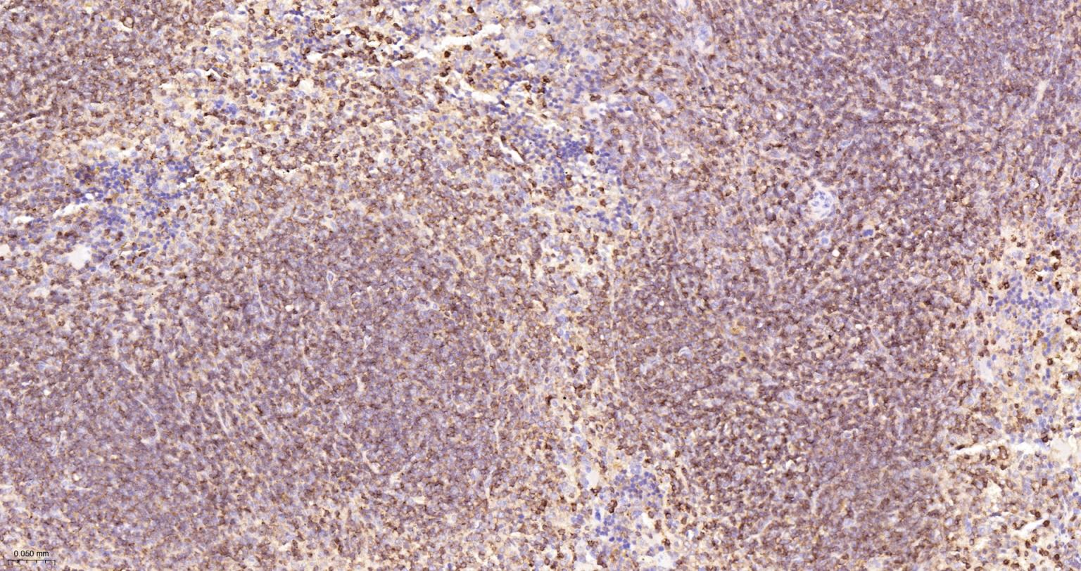 Paraformaldehyde-fixed, paraffin embedded Mouse Spleen; Antigen retrieval by boiling in sodium citrate buffer (pH6.0) for 15 min; Antibody incubation with CD45 Polyclonal Antibody, Unconjugated(bs-10602R) at 1:200 overnight at 4°C, followed by conjugation to the bs-0295G-HRP and DAB (C-0010) staining.