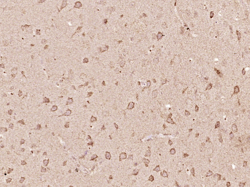Paraformaldehyde-fixed, paraffin embedded (Mouse brain); Antigen retrieval by boiling in sodium citrate buffer (pH6.0) for 15min; Block endogenous peroxidase by 3% hydrogen peroxide for 20 minutes; Blocking buffer (normal goat serum) at 37°C for 30min; Antibody incubation with (SLAIN2) Polyclonal Antibody, Unconjugated (bs-17513R) at 1:400 overnight at 4°C, followed by operating according to SP Kit(Rabbit) (sp-0023) instructionsand DAB staining.