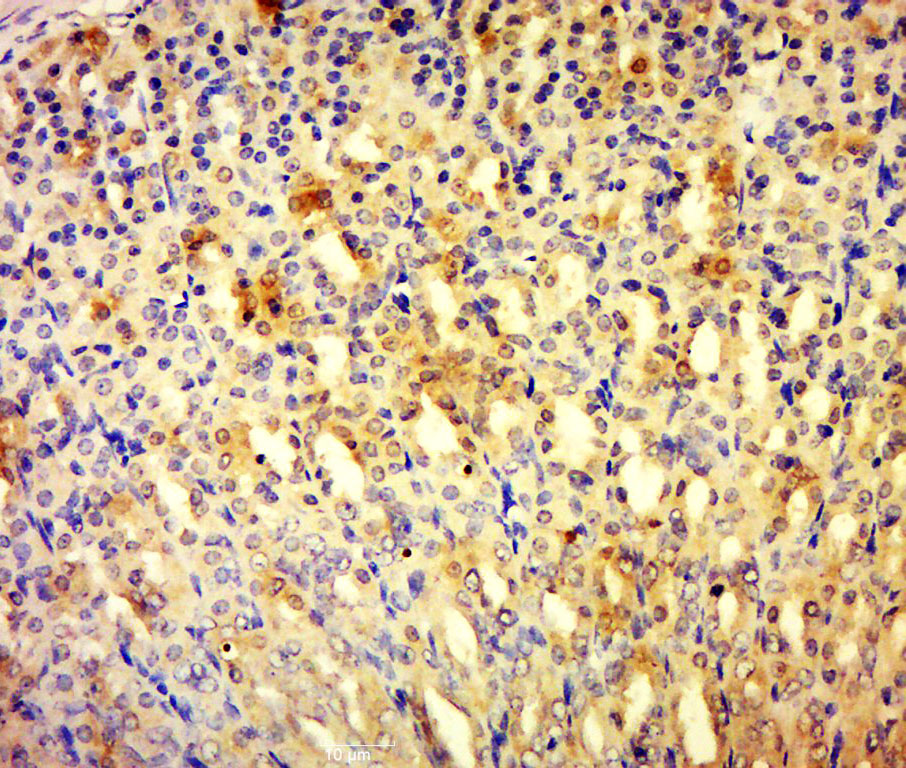 Paraformaldehyde-fixed, paraffin embedded (Rat kidney); Antigen retrieval by boiling in sodium citrate buffer (pH6.0) for 15min; Block endogenous peroxidase by 3% hydrogen peroxide for 20 minutes; Blocking buffer (normal goat serum) at 37°C for 30min; Antibody incubation with (MORN1) Polyclonal Antibody, Unconjugated (bs-17720R) at 1:500 overnight at 4°C, followed by a conjugated secondary (sp-0023) for 20 minutes and DAB staining.