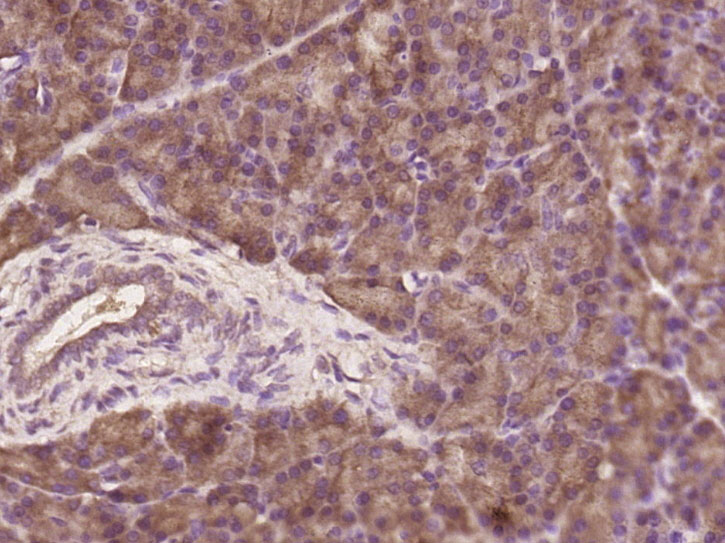 Paraformaldehyde-fixed, paraffin embedded (rat pancreas tissue); Antigen retrieval by boiling in sodium citrate buffer (pH6.0) for 15min; Block endogenous peroxidase by 3% hydrogen peroxide for 20 minutes; Blocking buffer (normal goat serum) at 37°C for 30min; Antibody incubation with (MTR) Polyclonal Antibody, Unconjugated (bs-17892R) at 1:400 overnight at 4°C, followed by operating according to SP Kit(Rabbit) (sp-0023) instructionsand DAB staining.