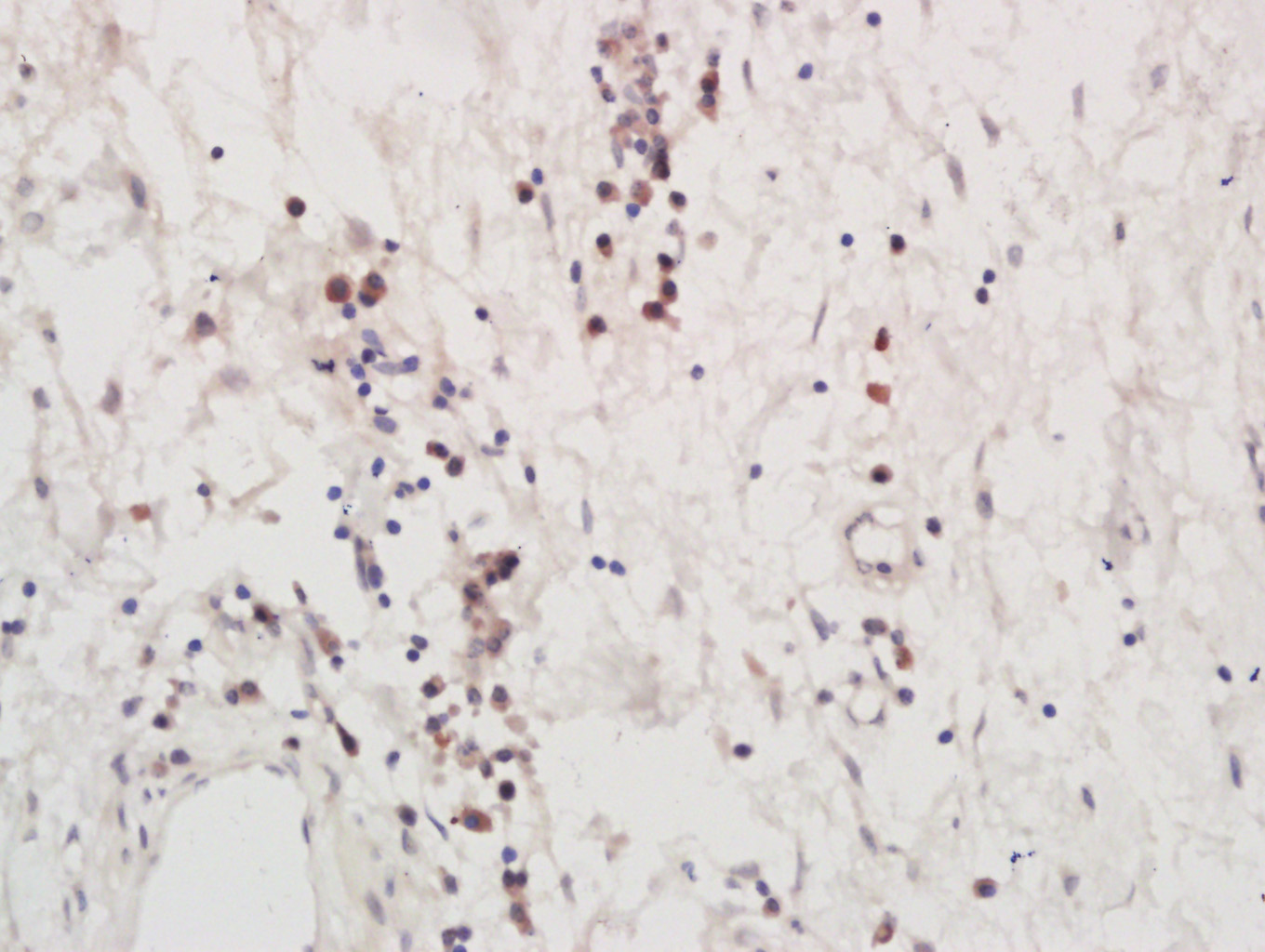 Paraformaldehyde-fixed, paraffin embedded (Human colorectal cancer); Antigen retrieval by boiling in sodium citrate buffer (pH6.0) for 15min; Block endogenous peroxidase by 3% hydrogen peroxide for 20 minutes; Blocking buffer (normal goat serum) at 37°C for 30min; Antibody incubation with (Leucyl tRNA synthetase) Polyclonal Antibody, Unconjugated (bs-18227R) at 1:400 overnight at 4°C, followed by a conjugated secondary antibody (sp-0023) for 20 minutes and DAB staining.