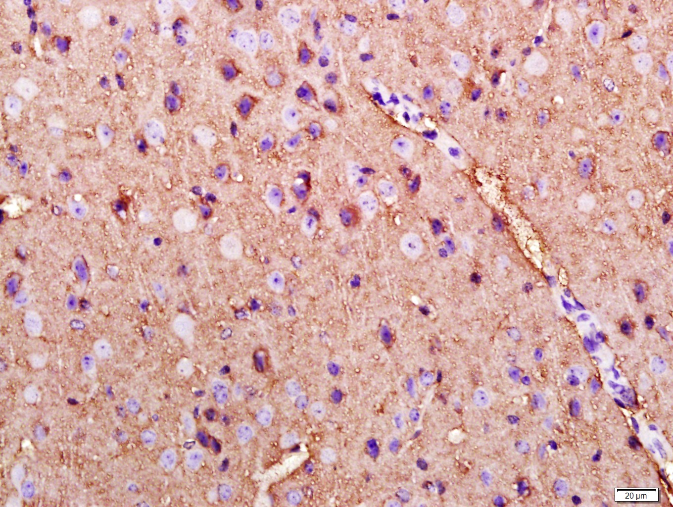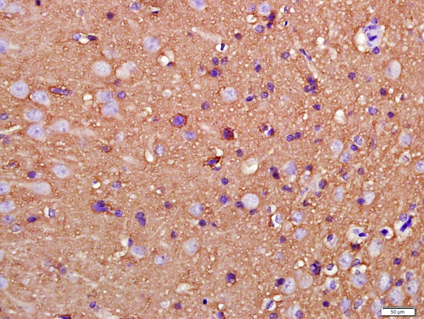 Paraformaldehyde-fixed, paraffin embedded (Rat brain); Antigen retrieval by boiling in sodium citrate buffer (pH6.0) for 15min; Block endogenous peroxidase by 3% hydrogen peroxide for 20 minutes; Blocking buffer (normal goat serum) at 37°C for 30min; Antibody incubation with (GPM6A) Polyclonal Antibody, Unconjugated (bs-10757R) at 1:500 overnight at 4°C, followed by a conjugated secondary (sp-0023) for 20 minutes and DAB staining.