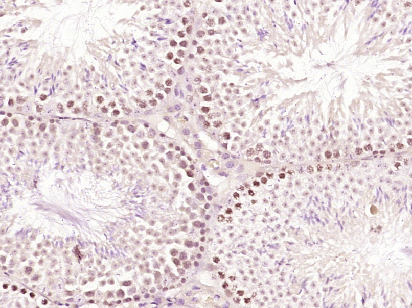 Paraformaldehyde-fixed, paraffin embedded (Mouse testis); Antigen retrieval by boiling in sodium citrate buffer (pH6.0) for 15min; Block endogenous peroxidase by 3% hydrogen peroxide for 20 minutes; Blocking buffer (normal goat serum) at 37°C for 30min; Antibody incubation with (MED8) Polyclonal Antibody, Unconjugated (bs-18773R) at 1:400 overnight at 4°C, followed by operating according to SP Kit(Rabbit) (sp-0023) instructionsand DAB staining.