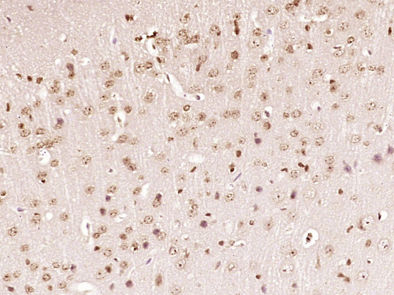 Paraformaldehyde-fixed, paraffin embedded (Mouse brain); Antigen retrieval by boiling in sodium citrate buffer (pH6.0) for 15min; Block endogenous peroxidase by 3% hydrogen peroxide for 20 minutes; Blocking buffer (normal goat serum) at 37°C for 30min; Antibody incubation with (MED8) Polyclonal Antibody, Unconjugated (bs-18773R) at 1:400 overnight at 4°C, followed by operating according to SP Kit(Rabbit) (sp-0023) instructionsand DAB staining.