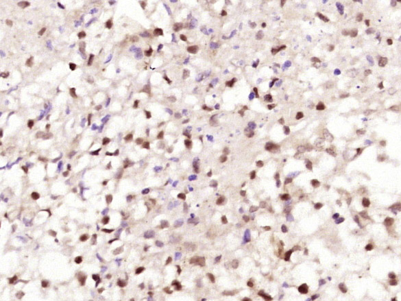 Paraformaldehyde-fixed, paraffin embedded (mouse placenta tissue); Antigen retrieval by boiling in sodium citrate buffer (pH6.0) for 15min; Block endogenous peroxidase by 3% hydrogen peroxide for 20 minutes; Blocking buffer (normal goat serum) at 37°C for 30min; Antibody incubation with (p18SRP) Polyclonal Antibody, Unconjugated (bs-21108R) at 1:400 overnight at 4°C, followed by operating according to SP Kit(Rabbit) (sp-0023) instructionsand DAB staining.