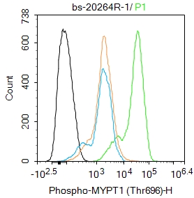 Primary Antibody (green line): Rabbit Anti-Phospho-MYPT1 (Thr696) antibody (bs-20264R)