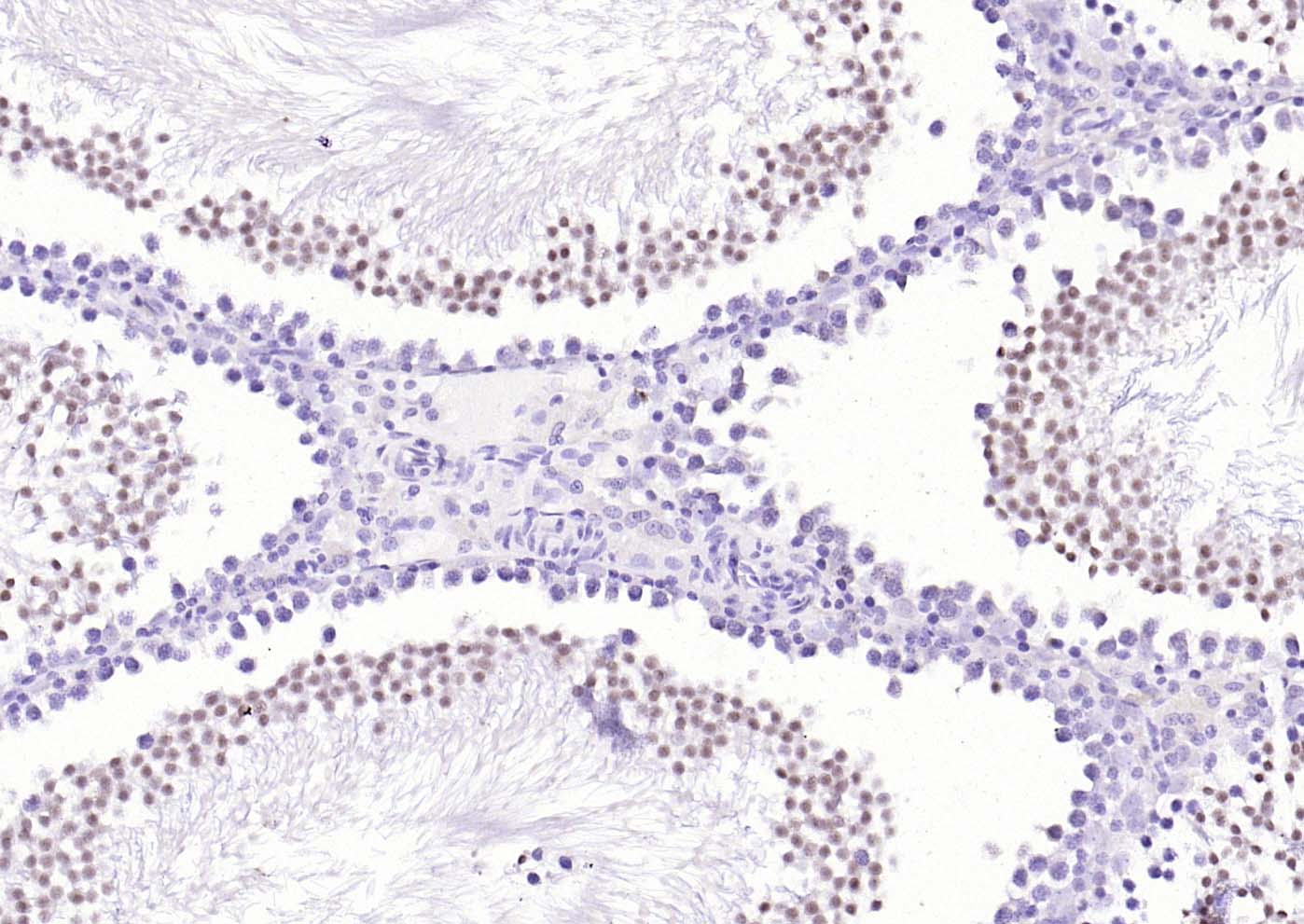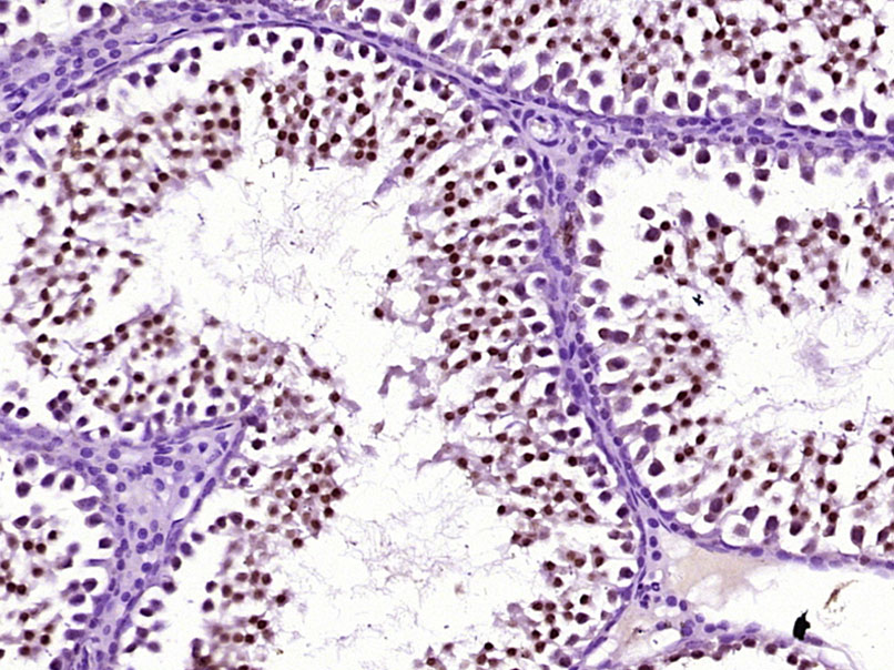 Paraformaldehyde-fixed, paraffin embedded (rat testis); Antigen retrieval by boiling in sodium citrate buffer (pH6.0) for 15min; Block endogenous peroxidase by 3% hydrogen peroxide for 20 minutes; Blocking buffer (normal goat serum) at 37°C for 30min; Incubation with (HDAC9) Polyclonal Antibody, Unconjugated (bs-20554R) at 1:200 overnight at 4°C, followed by operating according to SP Kit(Rabbit) (sp-0023) instructionsand DAB staining.
