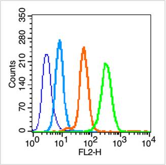 Secondary Antibody (white blue line): Goat anti-rabbit IgG-PE,Dilution: 1μg /test.