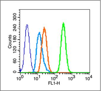 Secondary Antibody (white blue line): Goat anti-rabbit IgG-FITC,Dilution: 1μg /test.