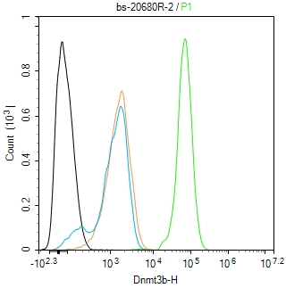 Primary Antibody (green line): Rabbit Anti-Dnmt3b antibody (bs-20680R),Dilution: 0.2μg /10^6 cells;