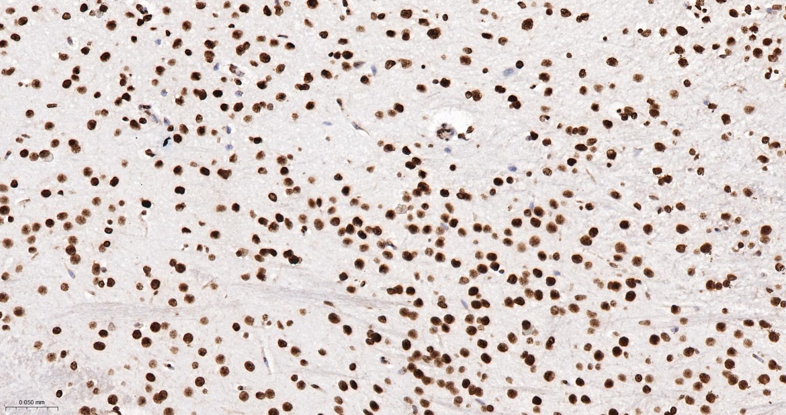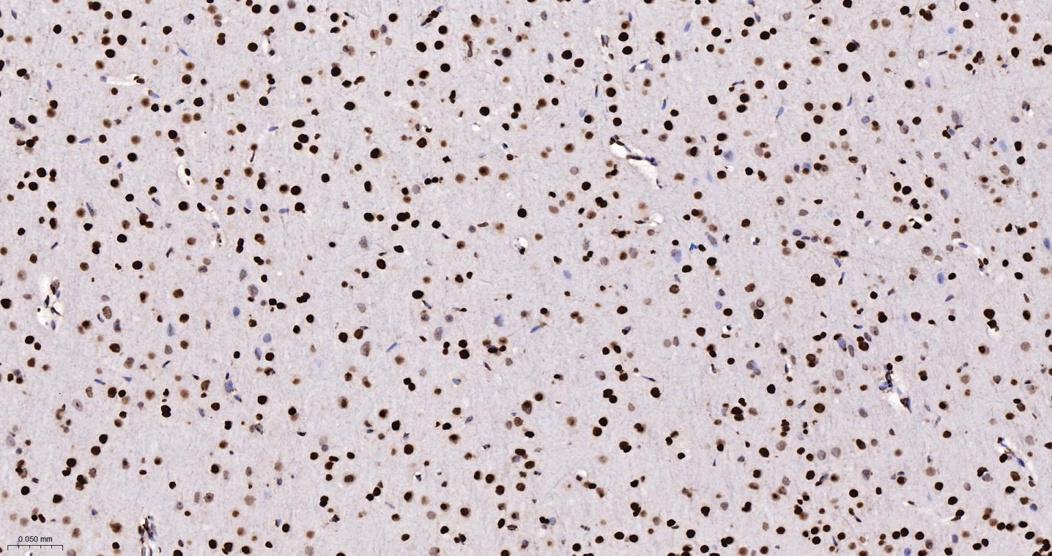 Paraformaldehyde-fixed, paraffin embedded Rat Cerebrum; Antigen retrieval by boiling in sodium citrate buffer (pH6.0) for 15 min; The section was incubated with Histone H3(mono methyl K79) Monoclonal Antibody, Unconjugated (ascites of bsm-33104M) at 1:1500 overnight at 4°C, followed by conjugation to the bs-40296G-HRP and DAB (C-0010) staining.