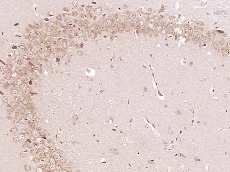 Paraformaldehyde-fixed, paraffin embedded (Mouse brain); Antigen retrieval by boiling in sodium citrate buffer (pH6.0) for 15min; Block endogenous peroxidase by 3% hydrogen peroxide for 20 minutes; Blocking buffer (normal goat serum) at 37°C for 30min; Antibody incubation with (PER2/Period circadian protein 2) Polyclonal Antibody, Unconjugated (bs-23387R) at 1:400 overnight at 4°C, followed by operating according to SP Kit(Rabbit) (sp-0023) instructionsand DAB staining.