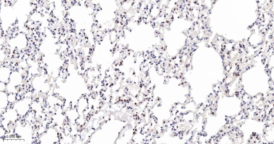 Paraformaldehyde-fixed, paraffin embedded Mouse Lung; Antigen retrieval by boiling in sodium citrate buffer (pH6.0) for 15 min; Antibody incubation with phospho-STAT3 (Ser727) Monoclonal Antibody, Unconjugated(bsm-52210R) at 1:200 overnight at 4°C, followed by conjugation to the bs-0295G-HRP and DAB (C-0010) staining.