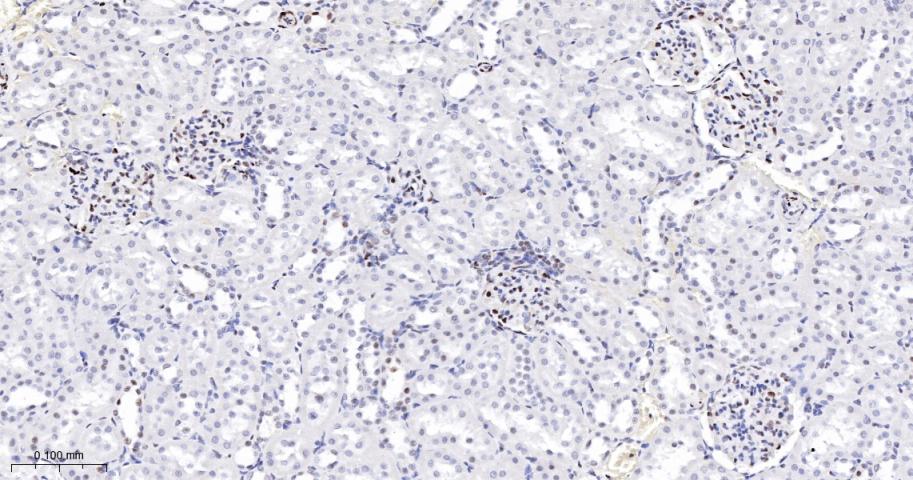 Paraformaldehyde-fixed, paraffin embedded Mouse Kidney; Antigen retrieval by boiling in sodium citrate buffer (pH6.0) for 15 min; Antibody incubation with phospho-STAT3 (Ser727) Monoclonal Antibody, Unconjugated(bsm-52210R) at 1:200 overnight at 4°C, followed by conjugation to the bs-0295G-HRP and DAB (C-0010) staining.