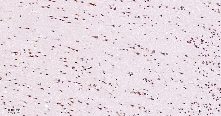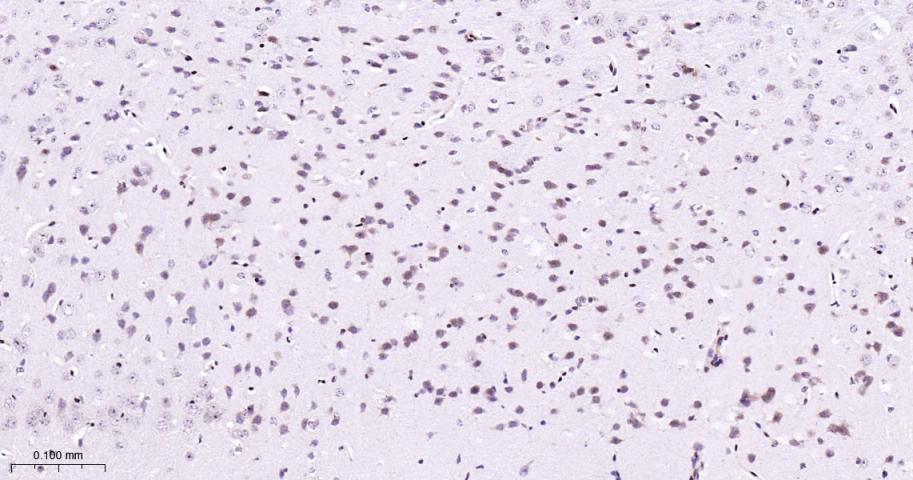 Paraformaldehyde-fixed, paraffin embedded Rat Cerebrum; Antigen retrieval by boiling in sodium citrate buffer (pH6.0) for 15 min; Antibody incubation with P38 MAPK/ MAPK14 Polyclonal Antibody, Unconjugated (bs-28027R) at 1:200 overnight at 4°C, followed by conjugation to the bs-0295G-HRP and DAB (C-0010) staining.
