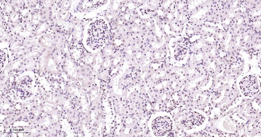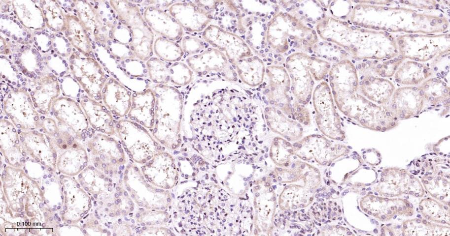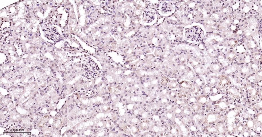 Paraformaldehyde-fixed, paraffin embedded Rat Kidney; Antigen retrieval by boiling in sodium citrate buffer (pH6.0) for 15 min; Antibody incubation with P38 MAPK/ MAPK14 Polyclonal Antibody, Unconjugated (bs-28027R) at 1:200 overnight at 4°C, followed by conjugation to the bs-0295G-HRP and DAB (C-0010) staining.