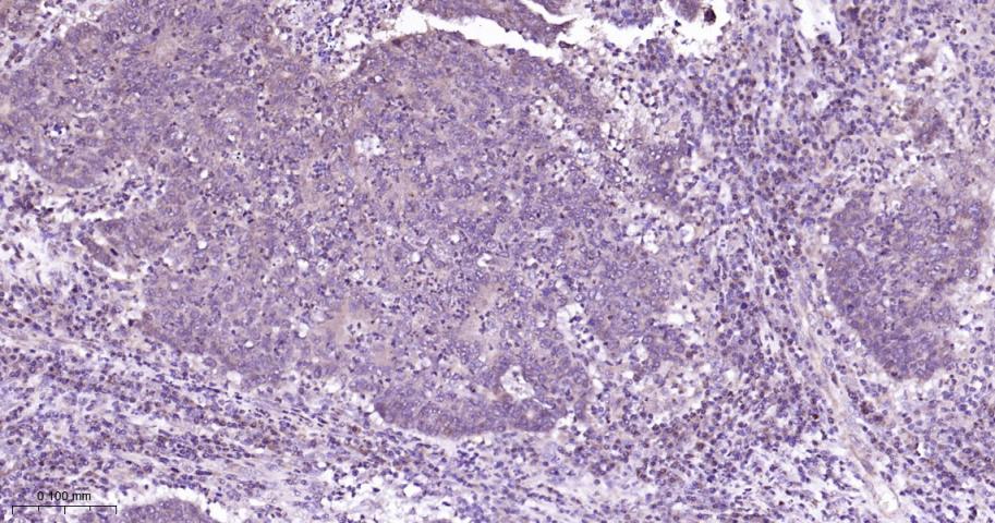 Paraformaldehyde-fixed, paraffin embedded Human Colon Cancer; Antigen retrieval by boiling in sodium citrate buffer (pH6.0) for 15 min; Antibody incubation with P38 MAPK/ MAPK14 Polyclonal Antibody, Unconjugated (bs-28027R) at 1:200 overnight at 4°C, followed by conjugation to the bs-0295G-HRP and DAB (C-0010) staining.