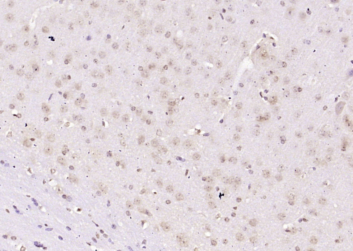 Paraformaldehyde-fixed, paraffin embedded (mouse brain tissue); Antigen retrieval by boiling in sodium citrate buffer (pH6.0) for 15min; Block endogenous peroxidase by 3% hydrogen peroxide for 20 minutes; Blocking buffer (normal goat serum) at 37°C for 30min; Antibody incubation with (SOX6 ) Polyclonal Antibody, Unconjugated (bs-21579R) at 1:400 overnight at 4°C, followed by operating according to SP Kit(Rabbit) (sp-0023) instructionsand DAB staining.