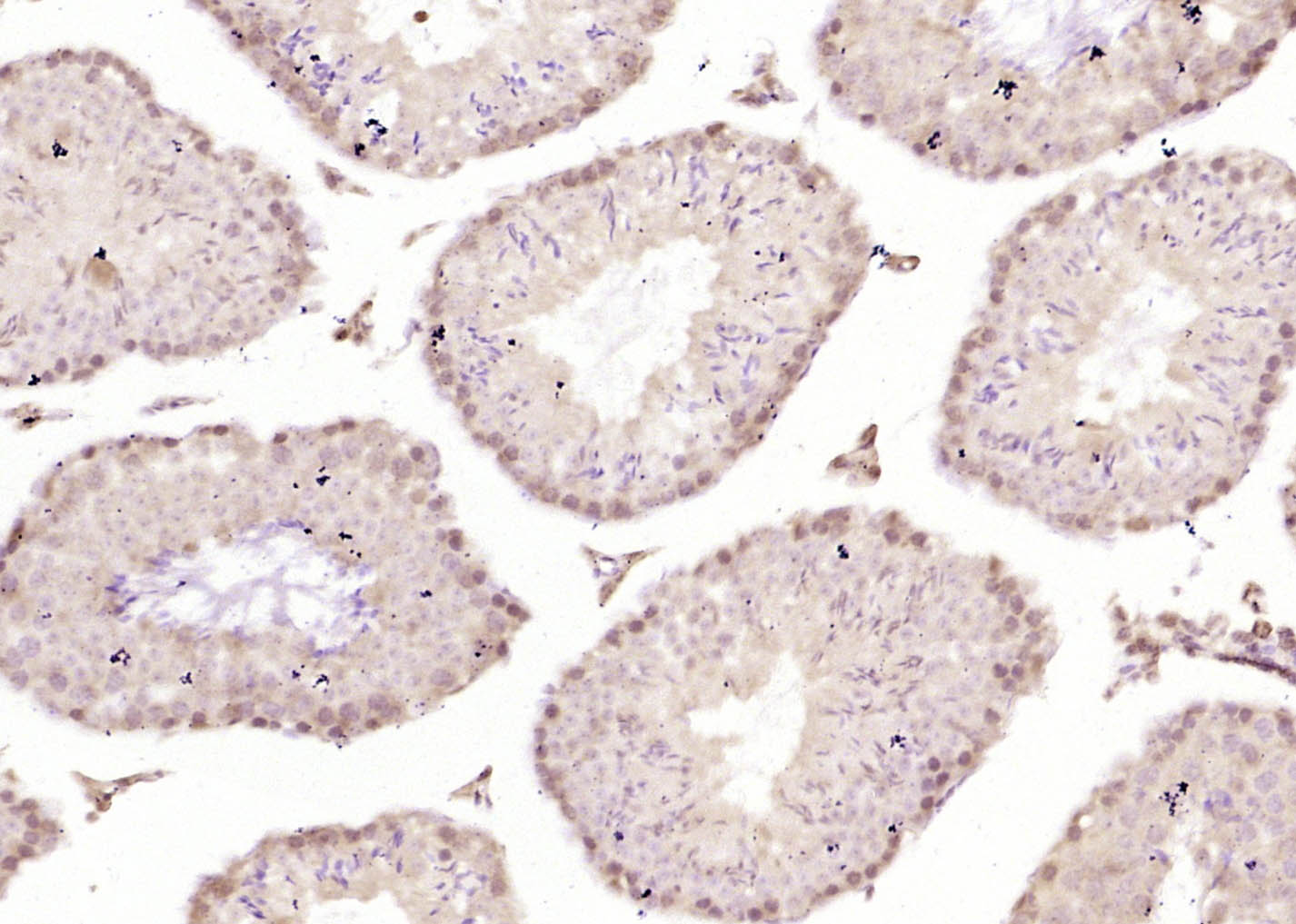 Paraformaldehyde-fixed, paraffin embedded (mouse testis); Antigen retrieval by boiling in sodium citrate buffer (pH6.0) for 15min; Block endogenous peroxidase by 3% hydrogen peroxide for 20 minutes; Blocking buffer (normal goat serum) at 37°C for 30min; Antibody incubation with (SOX6) Polyclonal Antibody, Unconjugated (bs-21579R) at 1:400 overnight at 4°C, followed by operating according to SP Kit(Rabbit) (sp-0023) instructionsand DAB staining.