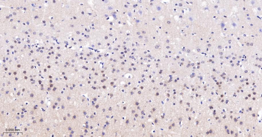 Paraformaldehyde-fixed, paraffin embedded Rat Cerebrum; Antigen retrieval by boiling in sodium citrate buffer (pH6.0) for 15 min; The section was incubated with Phospho-PKC alpha (Thr638) Monoclonal Antibody, Unconjugated (bsm-52187R) at 1:200 overnight at 4°C, followed by conjugation to the bs-0295G-HRP and DAB (C-0010) staining.
