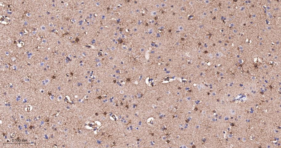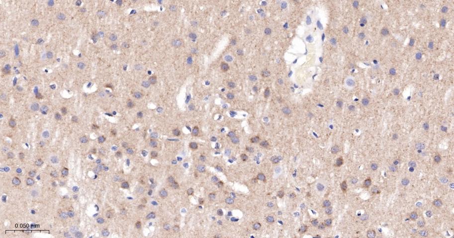 Paraformaldehyde-fixed, paraffin embedded Mouse Cerebrum; Antigen retrieval by boiling in sodium citrate buffer (pH6.0) for 15 min; The section was incubated with Phospho-PKC alpha (Thr638) Monoclonal Antibody, Unconjugated (bsm-52187R) at 1:200 overnight at 4°C, followed by conjugation to the bs-0295G-HRP and DAB (C-0010) staining.