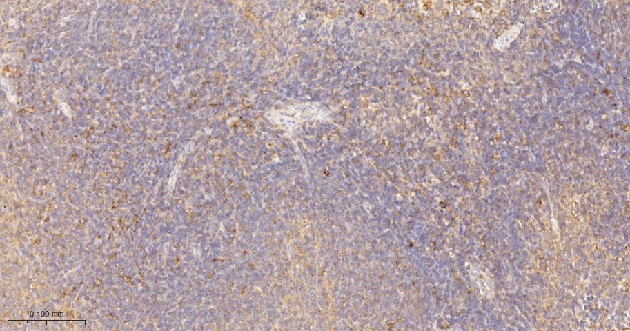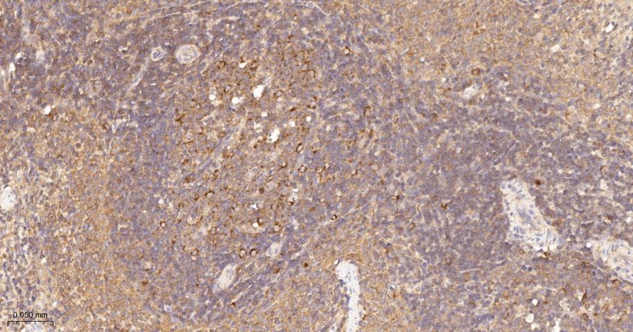 Paraformaldehyde-fixed, paraffin embedded Rat Spleen; Antigen retrieval by boiling in sodium citrate buffer (pH6.0) for 15 min; The section was incubated with IKK gamma Monoclonal Antibody, Unconjugated (bsm-54012R) at 1:200 overnight at 4°C, followed by conjugation to the bs-0295G-HRP and DAB (C-0010) staining.