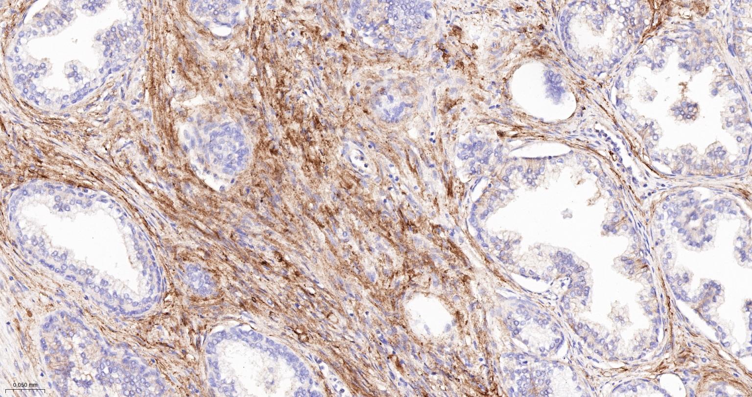 Paraformaldehyde-fixed, paraffin embedded Human Prostate Cancer; Antigen retrieval by boiling in sodium citrate buffer (pH6.0) for 15 min; Antibody incubation with Vinculin Monoclonal Antibody, Unconjugated(bsm-54148R) at 1:1000 overnight at 4°C, followed by conjugation to the bs-0295G-HRP and DAB (C-0010) staining.