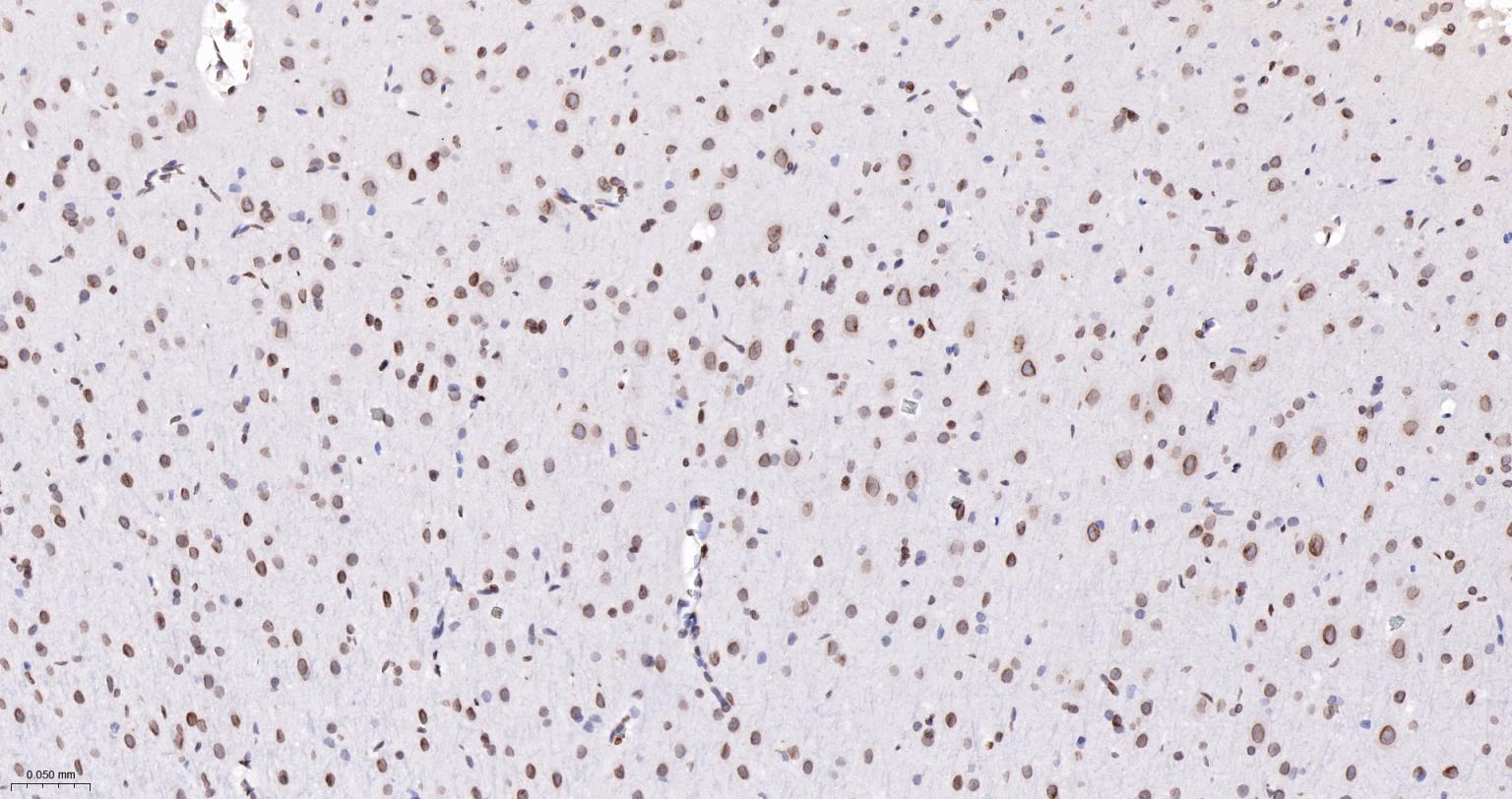 Paraformaldehyde-fixed, paraffin embedded Rat Cerebrum; Antigen retrieval by boiling in sodium citrate buffer (pH6.0) for 15 min; The section was incubated with Lamin A/C Monoclonal Antibody, Unconjugated (bsm-51683M) at 1:100 overnight at 4°C, followed by conjugation to the bs-40296G-HRP and DAB (C-0010) staining.