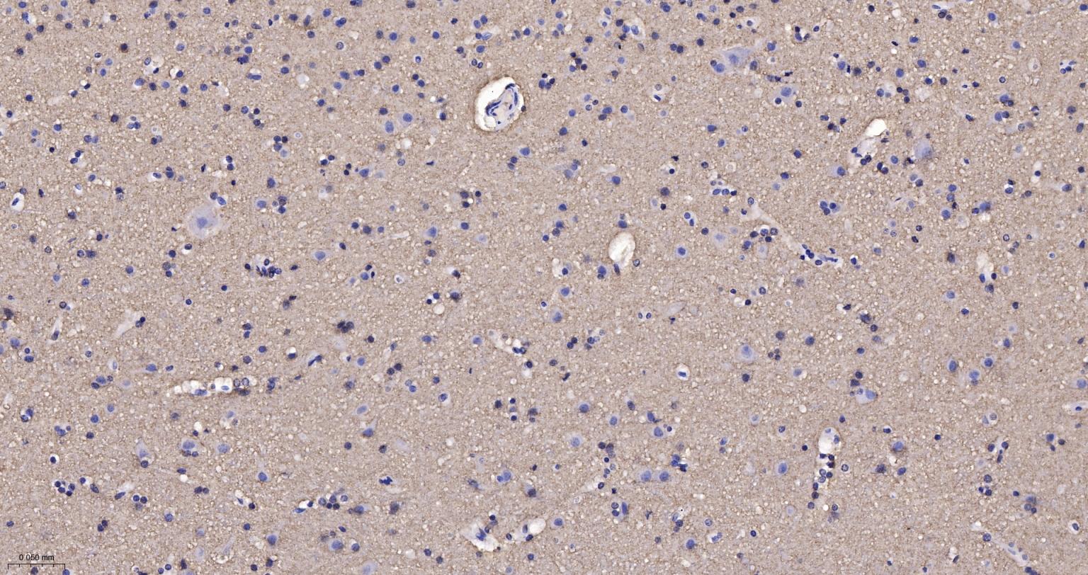 Alpha-synuclein is a member of the synuclein family, which also includes beta- and gamma-synuclein. Synucleins are abundantly expressed in the brain and alpha- and beta-synuclein inhibit phospholipase D2 selectively. SNCA may serve to integrate presynaptic signaling and membrane trafficking. Defects in SNCA have been implicated in the pathogenesis of Parkinson disease. SNCA peptides are a major component of amyloid plaques in the brains of patients with Alzheimer's disease. Alternatively spliced transcripts encoding different isoforms have been identified for this gene. [provided by RefSeq, Feb 2016]. Function: May be involved in the regulation of dopamine release and transport. Induces fibrillization of microtubule-associated protein tau. Reduces neuronal responsiveness to various apoptotic stimuli, leading to a decreased caspase-3 activation. Subunit: Soluble monomer which can form filamentous aggregates. Interacts with UCHL1. Interacts with phospholipase D and histones. Subcellular Location: Cytoplasm. Membrane. Nucleus. Cell junction, synapse. Note=Membrane-bound in dopaminergic neurons. Tissue Specificity: Expressed principally in brain but is also expressed in low concentrations in all tissues examined except in liver. Concentrated in presynaptic nerve terminals. Post-translational modifications: Phosphorylated, predominantly on serine residues. Phosphorylation by CK1 appears to occur on residues distinct from the residue phosphorylated by other kinases. Phosphorylation of Ser-129 is selective and extensive in synucleinopathy lesions. In vitro, phosphorylation at Ser-129 promoted insoluble fibril formation. Phosphorylated on Tyr-125 by a PTK2B-dependent pathway upon osmotic stress. Hallmark lesions of neurodegenerative synucleinopathies contain alpha-synuclein that is modified by nitration of tyrosine residues and possibly by dityrosine cross-linking to generated stable oligomers. Ubiquitinated. The predominant conjugate is the diubiquitinated form (By similarity). Acetylation at Met-1 seems to be important for proper folding and native oligomeric structure. DISEASE: Note=Genetic alterations of SNCA resulting in aberrant polymerization into fibrils, are associated with several neurodegenerative diseases (synucleinopathies). SNCA fibrillar aggregates represent the major non A-beta component of Alzheimer disease amyloid plaque, and a major component of Lewy body inclusions. They are also found within Lewy body (LB)-like intraneuronal inclusions, glial inclusions and axonal spheroids in neurodegeneration with brain iron accumulation type 1. Parkinson disease 1 (PARK1) [MIM:168601]: A complex neurodegenerative disorder characterized by bradykinesia, resting tremor, muscular rigidity and postural instability. Additional features are characteristic postural abnormalities, dysautonomia, dystonic cramps, and dementia. The pathology of Parkinson disease involves the loss of dopaminergic neurons in the substantia nigra and the presence of Lewy bodies (intraneuronal accumulations of aggregated proteins), in surviving neurons in various areas of the brain. The disease is progressive and usually manifests after the age of 50 years, although early-onset cases (before 50 years) are known. The majority of the cases are sporadic suggesting a multifactorial etiology based on environmental and genetic factors. However, some patients present with a positive family history for the disease. Familial forms of the disease usually begin at earlier ages and are associated with atypical clinical features. Note=The disease is caused by mutations affecting the gene represented in this entry. Parkinson disease 4 (PARK4) [MIM:605543]: A complex neurodegenerative disorder with manifestations ranging from typical Parkinson disease to dementia with Lewy bodies. Clinical features include parkinsonian symptoms (resting tremor, rigidity, postural instability and bradykinesia), dementia, diffuse Lewy body pathology, autonomic dysfunction, hallucinations and paranoia. Note=The disease is caused by mutations affecting the gene represented in this entry. [DISEASE] Dementia Lewy body (DLB) [MIM:127750]: A neurodegenerative disorder characterized by mental impairment leading to dementia, parkinsonism, fluctuating cognitive function, visual hallucinations, falls, syncopal episodes, and sensitivity to neuroleptic medication. Brainstem or cortical intraneuronal accumulations of aggregated proteins (Lewy bodies) are the only essential pathologic features. Patients may also have hippocampal and neocortical senile plaques, sometimes in sufficient number to fulfill the diagnostic criteria for Alzheimer disease. Note=The disease is caused by mutations affecting the gene represented in this entry. Similarity: Belongs to the synuclein family. SWISS: P37840 Gene ID: 6622 Database links: Entrez Gene: 6622 Human Entrez Gene: 20617 Mouse Omim: 163890 Human SwissProt: P37840 Human SwissProt: O55042 Mouse Unigene: 21374 Human Unigene: 17484 Mouse Unigene: 1827 Rat Synuclein 包括α-Synuclein,β-Synuclein 和γ-Synuclein 是神经细胞中富含的前突触蛋白。α-Synuclein,Alzheimer’(AD)病淀粉样蛋白沉积的成份之一,集中分布在神经细胞的包体和突触。在帕金森病人中发现有α-Synuclein的变异型,而γ-Synuclein与轴突病理学有关。 此抗体将为Lewy小体痴呆症、Parkinson症、AD和其它一些神经性疾病提供有用的病理诊断。 |