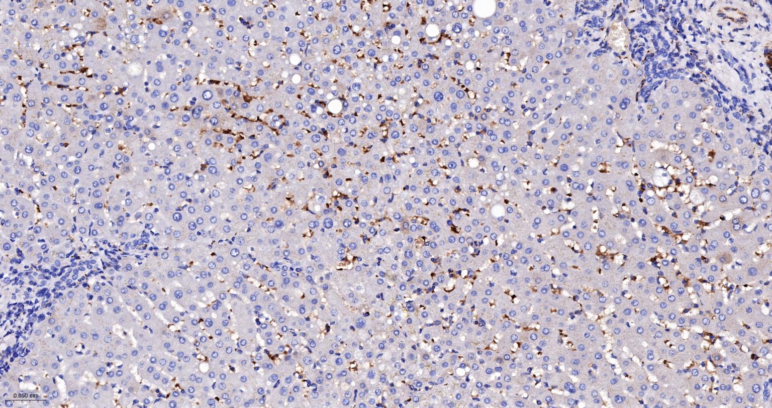 Paraformaldehyde-fixed, paraffin embedded Human Liver; Antigen retrieval by boiling in sodium citrate buffer (pH6.0) for 15 min; Antibody incubation with Alpha Synuclein Monoclonal Antibody, Unconjugated(bsm-54277R) at 1:200 overnight at 4°C, followed by conjugation to the SP Kit (Rabbit, SP-0023) and DAB (C-0010) staining.