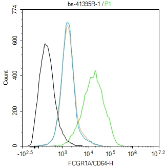 Primary Antibody (green line): Rabbit Anti-CD64 antibody (bs-41395R)