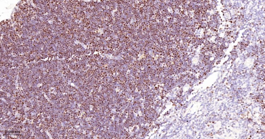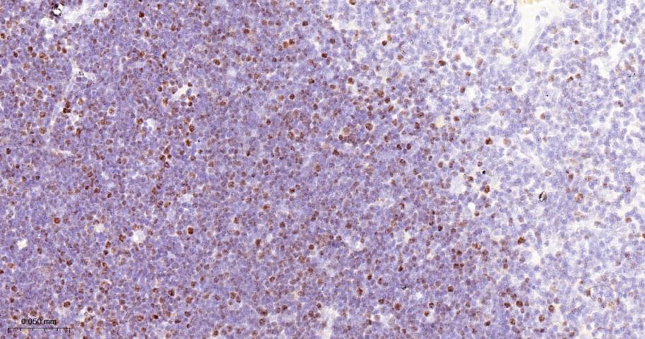 Paraformaldehyde-fixed, paraffin embedded Rat Thymus; Antigen retrieval by boiling in sodium citrate buffer (pH6.0) for 15 min; The section was incubated with MCM3 Monoclonal Antibody, Unconjugated (bsm-60606R) at 1:200 overnight at 4°C, followed by conjugation to the bs-0295G-HRP and DAB (C-0010) staining.