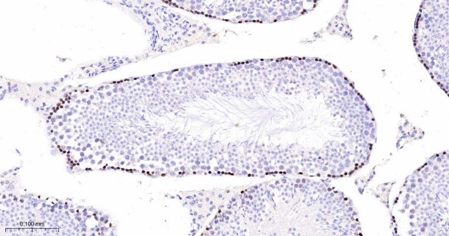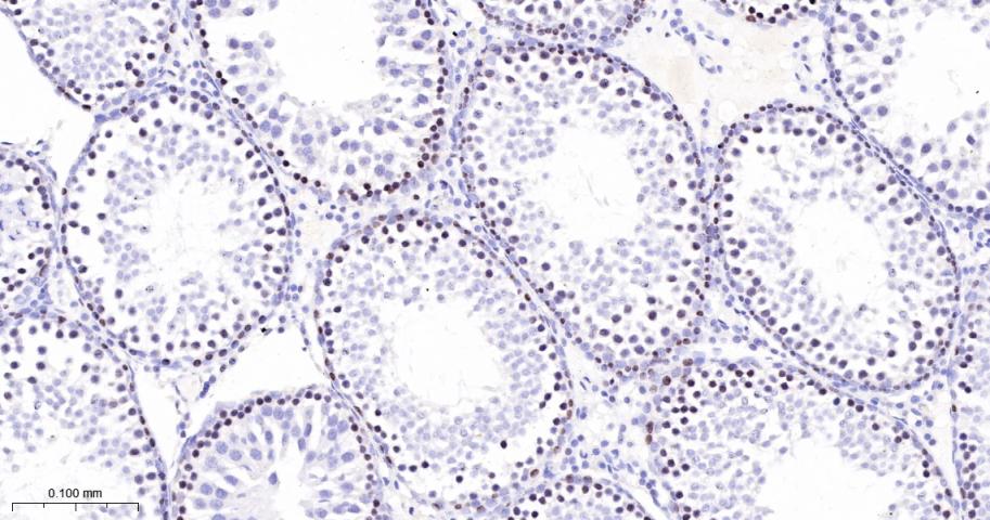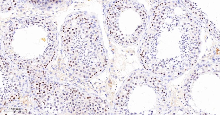 Paraformaldehyde-fixed, paraffin embedded Rat Testicles; Antigen retrieval by boiling in sodium citrate buffer (pH6.0) for 15 min; The section was incubated with MCM3 Monoclonal Antibody, Unconjugated (bsm-60606R) at 1:200 overnight at 4°C, followed by conjugation to the bs-0295G-HRP and DAB (C-0010) staining.