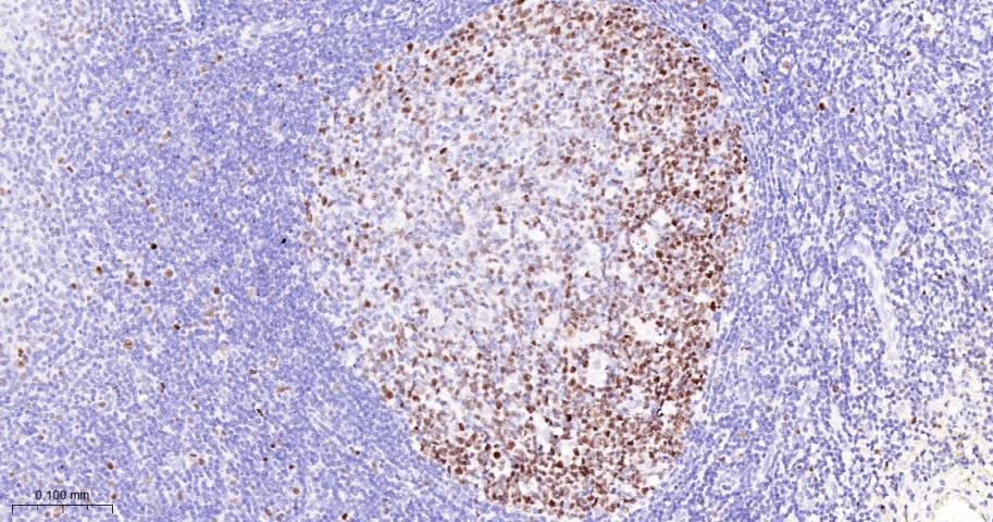 Paraformaldehyde-fixed, paraffin embedded Human Tonsil; Antigen retrieval by boiling in sodium citrate buffer (pH6.0) for 15 min; The section was incubated with MCM3 Monoclonal Antibody, Unconjugated (bsm-60606R) at 1:200 overnight at 4°C, followed by conjugation to the bs-0295G-HRP and DAB (C-0010) staining.