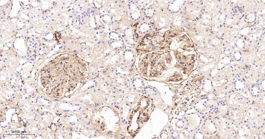 Paraformaldehyde-fixed, paraffin embedded Rat Kidney; Antigen retrieval by boiling in sodium citrate buffer (pH6.0) for 15 min; The section was incubated with Galectin-1 Monoclonal Antibody, Unconjugated (bsm-60296R) at 1:200 overnight at 4°C, followed by conjugation to the bs-0295G-HRP and DAB (C-0010) staining.