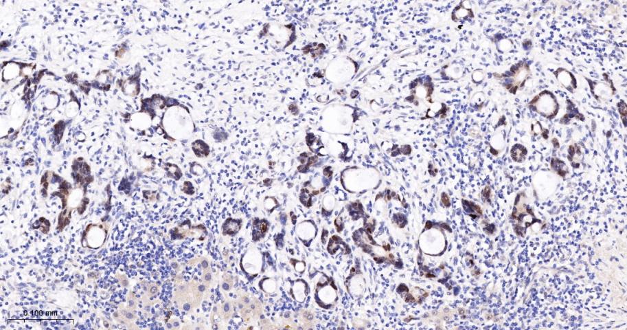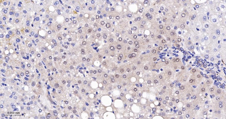 Paraformaldehyde-fixed, paraffin embedded Human Liver; Antigen retrieval by boiling in sodium citrate buffer (pH6.0) for 15 min; The section was incubated with PRMT5 Monoclonal Antibody, Unconjugated (bsm-60525R) at 1:200 overnight at 4°C, followed by conjugation to the bs-0295G-HRP and DAB (C-0010) staining.