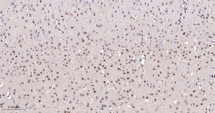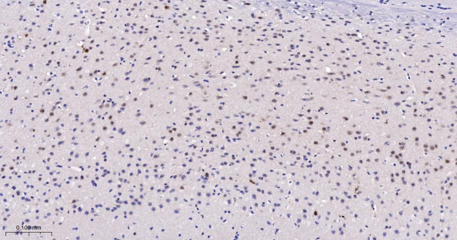 Paraformaldehyde-fixed, paraffin embedded Rat Cerebrum; Antigen retrieval by boiling in sodium citrate buffer (pH6.0) for 15 min; The section was incubated with PRMT5 Monoclonal Antibody, Unconjugated (bsm-60525R) at 1:200 overnight at 4°C, followed by conjugation to the bs-0295G-HRP and DAB (C-0010) staining.