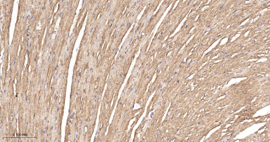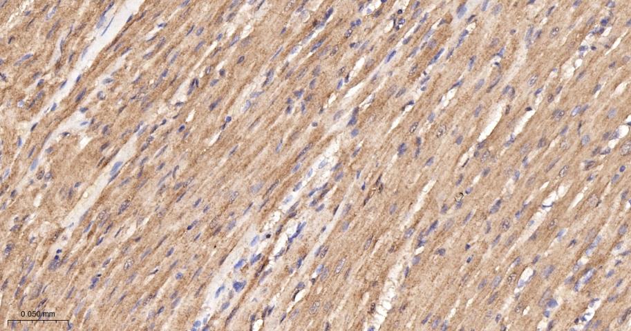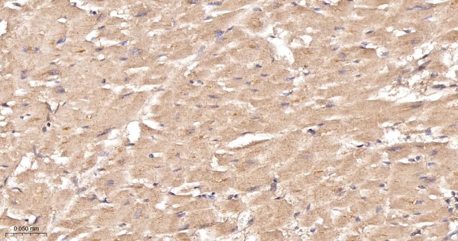 Paraformaldehyde-fixed, paraffin embedded Rat Heart; Antigen retrieval by boiling in sodium citrate buffer (pH6.0) for 15 min; The section was incubated with PCK2 Monoclonal Antibody, Unconjugated (bsm-60457R) at 1:200 overnight at 4°C, followed by conjugation to the bs-0295G-HRP and DAB (C-0010) staining.