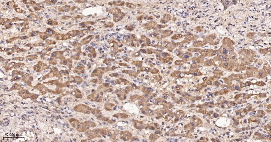 Paraformaldehyde-fixed, paraffin embedded Human Liver Cancer; Antigen retrieval by boiling in sodium citrate buffer (pH6.0) for 15 min; The section was incubated with PCK2 Monoclonal Antibody, Unconjugated (bsm-60457R) at 1:200 overnight at 4°C, followed by conjugation to the bs-0295G-HRP and DAB (C-0010) staining.