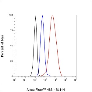 Isotype control: Rabbit monoclonal IgG (Blue line).