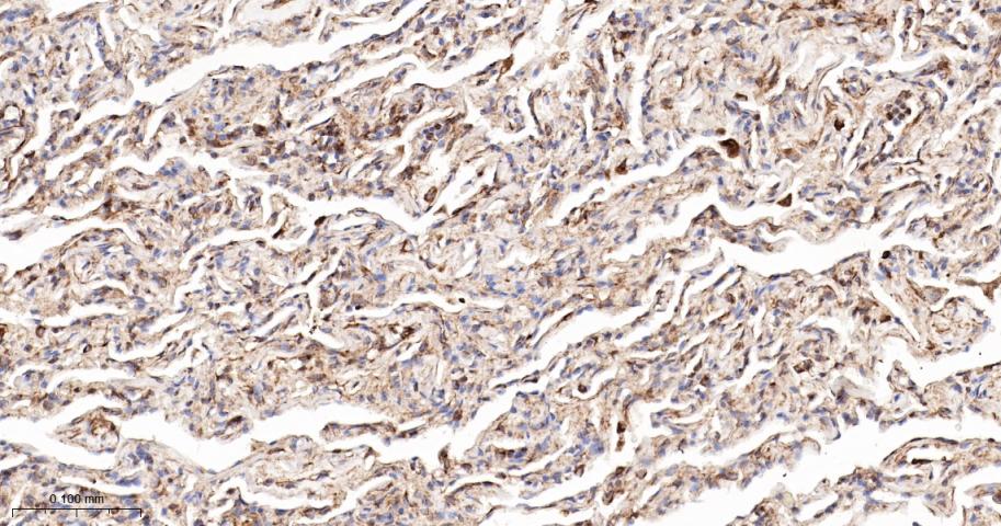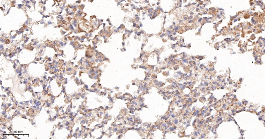 Paraformaldehyde-fixed, paraffin embedded Mouse Lung; Antigen retrieval by boiling in sodium citrate buffer (pH6.0) for 15 min; The section was incubated with BAP31 Monoclonal Antibody, Unconjugated (bsm-60472R) at 1:200 overnight at 4°C, followed by conjugation to the bs-0295G-HRP and DAB (C-0010) staining.