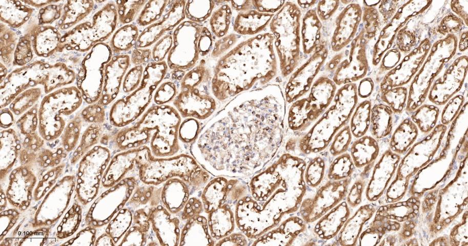 Paraformaldehyde-fixed, paraffin embedded Mouse Kidney; Antigen retrieval by boiling in sodium citrate buffer (pH6.0) for 15 min; The section was incubated with BAP31 Monoclonal Antibody, Unconjugated (bsm-60472R) at 1:200 overnight at 4°C, followed by conjugation to the bs-0295G-HRP and DAB (C-0010) staining.