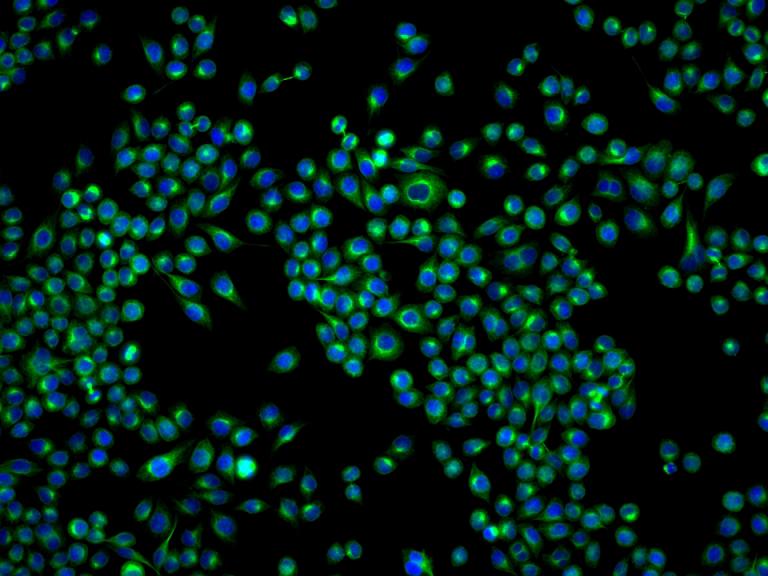 4% Paraformaldehyde-fixed Hela (H) cell; Triton X-100 at r.t. for 20 min; Antibody incubation with (BCAP31) monoclonal Antibody, unconjugated (bsm-60472R) 1:100, 90 min at 37°C; followed by conjugated Goat Anti-Rabbit IgG antibody (green, bs-60295G-BF488) at 37°C for 90 min, DAPI (blue, C02-04002) was used to stain the cell nuclei.