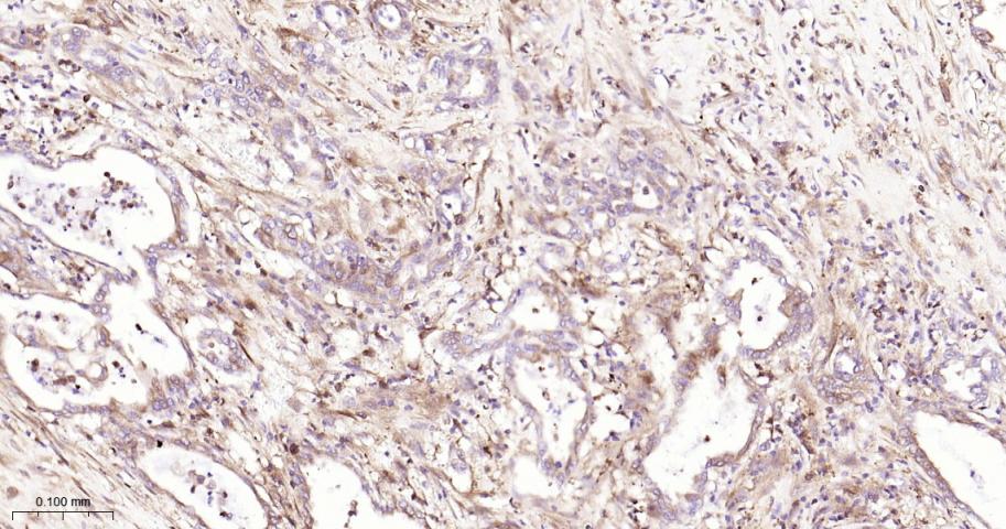 Paraformaldehyde-fixed, paraffin embedded Human Pancreatic Cancer; Antigen retrieval by boiling in sodium citrate buffer (pH6.0) for 15 min; Antibody incubation with PGAM1 Monoclonal Antibody, Unconjugated(bsm-60524R) at 1:200 overnight at 4°C, followed by conjugation to the bs-0295G-HRP and DAB (C-0010) staining.