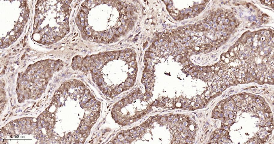 Paraformaldehyde-fixed, paraffin embedded Human Testicles; Antigen retrieval by boiling in sodium citrate buffer (pH6.0) for 15 min; Antibody incubation with PGAM1 Monoclonal Antibody, Unconjugated(bsm-60524R) at 1:200 overnight at 4°C, followed by conjugation to the bs-0295G-HRP and DAB (C-0010) staining.