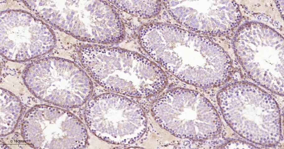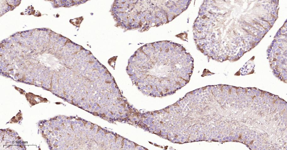Paraformaldehyde-fixed, paraffin embedded Rat Testicles; Antigen retrieval by boiling in sodium citrate buffer (pH6.0) for 15 min; Antibody incubation with PGAM1 Monoclonal Antibody, Unconjugated(bsm-60524R) at 1:200 overnight at 4°C, followed by conjugation to the bs-0295G-HRP and DAB (C-0010) staining.