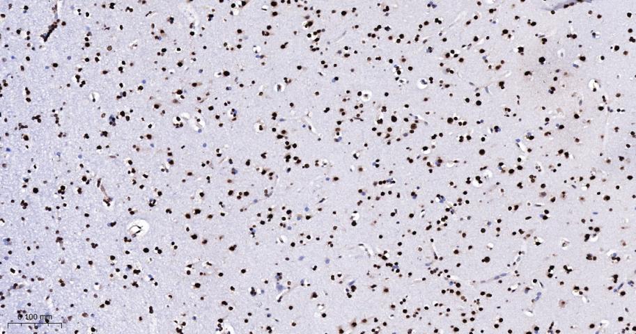 Paraformaldehyde-fixed, paraffin embedded Human Cerebrum; Antigen retrieval by boiling in sodium citrate buffer (pH6.0) for 15 min; The section was incubated with PTBP2 Monoclonal Antibody, Unconjugated (bsm-60529R) at 1:200 overnight at 4°C, followed by conjugation to the bs-0295G-HRP and DAB (C-0010) staining.