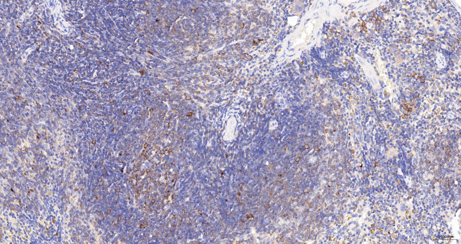 Paraformaldehyde-fixed, paraffin embedded Rat Spleen; Antigen retrieval by boiling in sodium citrate buffer (pH6.0) for 15 min; The section was incubated with GART Monoclonal Antibody, Unconjugated (bsm-52537R) at 1:200 overnight at 4°C, followed by conjugation to the bs-0295G-HRP and DAB (C-0010) staining.