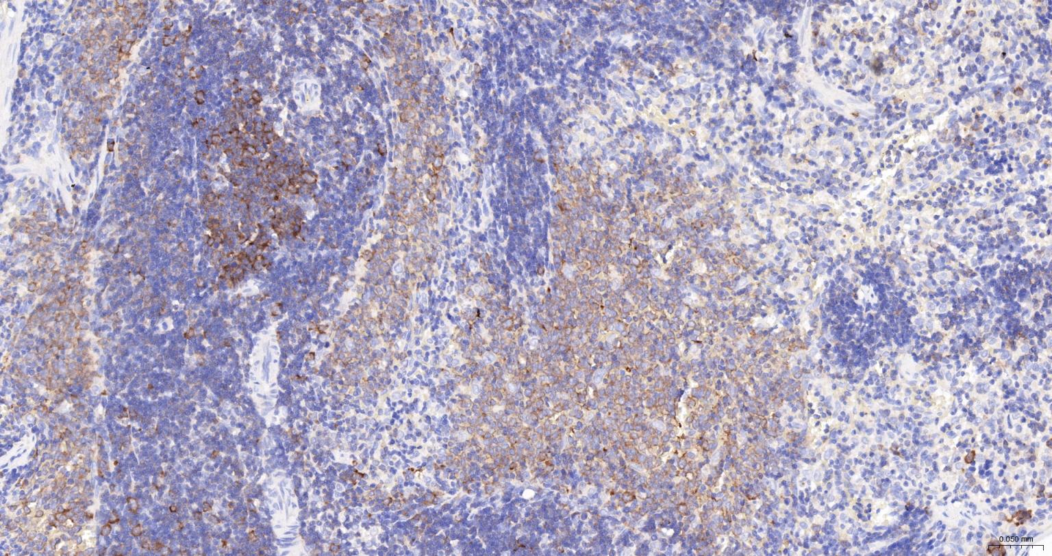 Paraformaldehyde-fixed, paraffin embedded Human Tonsil; Antigen retrieval by boiling in sodium citrate buffer (pH6.0) for 15 min; The section was incubated with GART Monoclonal Antibody, Unconjugated (bsm-52537R) at 1:200 overnight at 4°C, followed by conjugation to the bs-0295G-HRP and DAB (C-0010) staining.