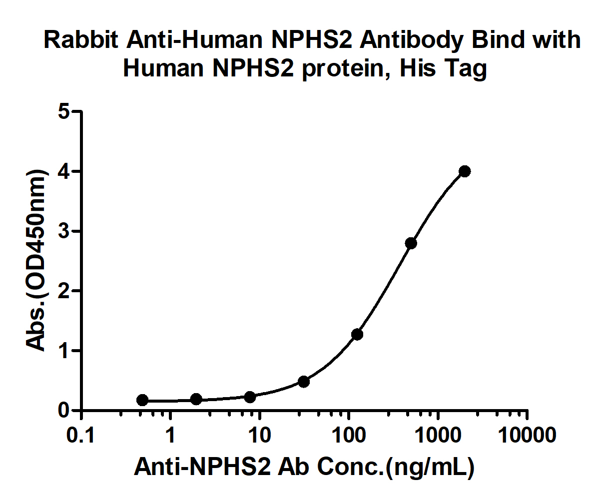 Measured by its binding ability in a indirect ELISA. Immobilized Human NPHS2 protein, His Tag (Cat. bs-41306P) at 2 μg/mL (100 μL/well) can bind Rabbit Anti-Human NPHS2 Antibody, the EC50 is 155.5 ng/mL.